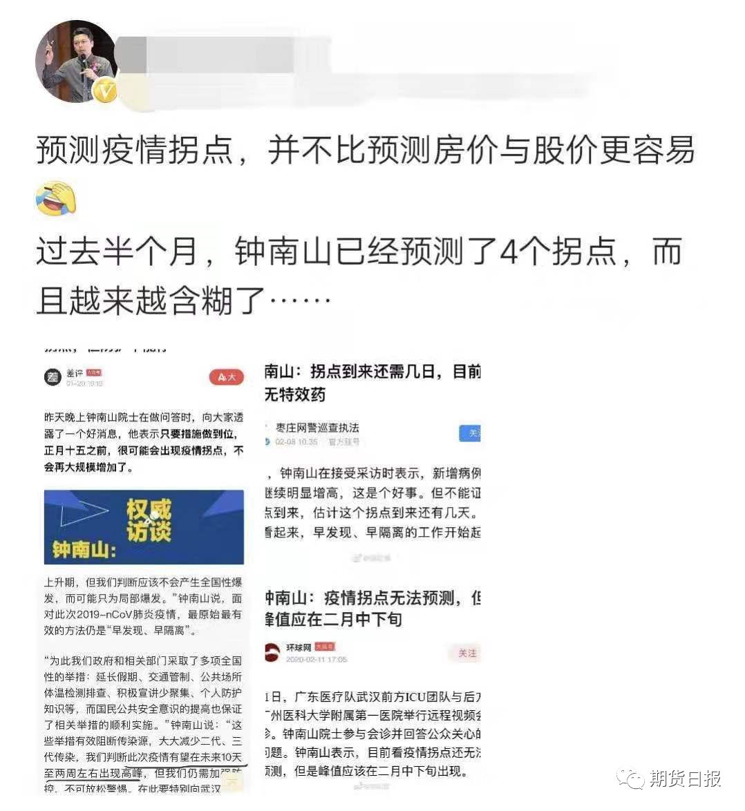 钟南山:疫情拐点无法预测 峰值应在2月中下旬出现