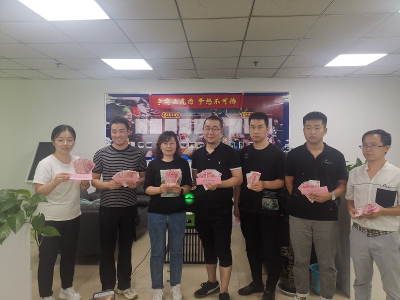 经过7月份一个月的业绩竞逐,最终,仇玉红以单月6万多的业绩拔得头筹。苏晗强主管紧随其后,拿下第二名,张彩云拿下第三名,邬杰拿下第四,产品部经理张健拿下第五名。这前五名的个人单月业绩都在5万左右,竞争可谓激烈异常。最终,公司对他们的努力给予奖励,当厚厚的现金奖励交到这几位优秀员工手上的时候,他们的努力得到了回报。